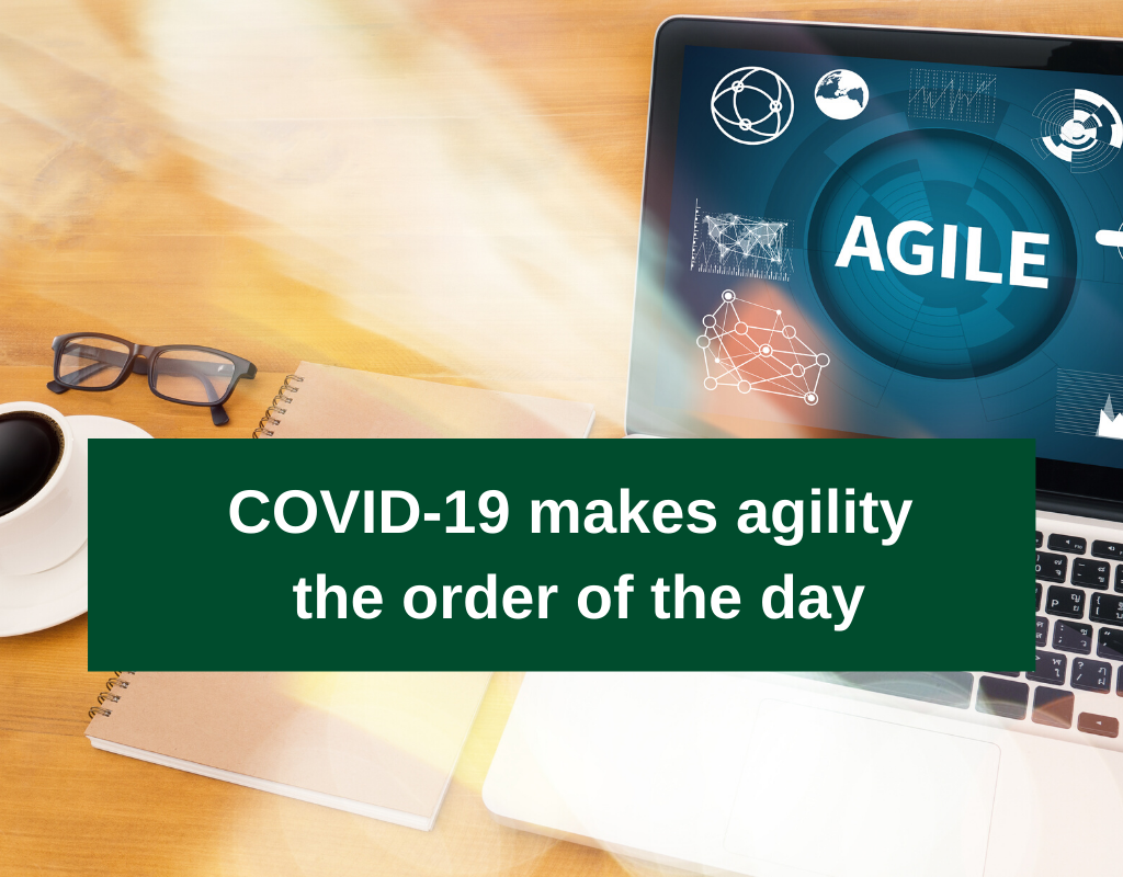 Until a few weeks ago, cooperation and physical proximity were closely linked. However, due to the recently adopted ban on contact and the measures taken to contain further infections, this is now no longer possible – in some cases even forbidden. Companies not only have to react, but also be agile. Agility means being able to adapt flexibly to “unforeseen events and new requirements”, whereby this is not only done reactively but proactively (Gabler).