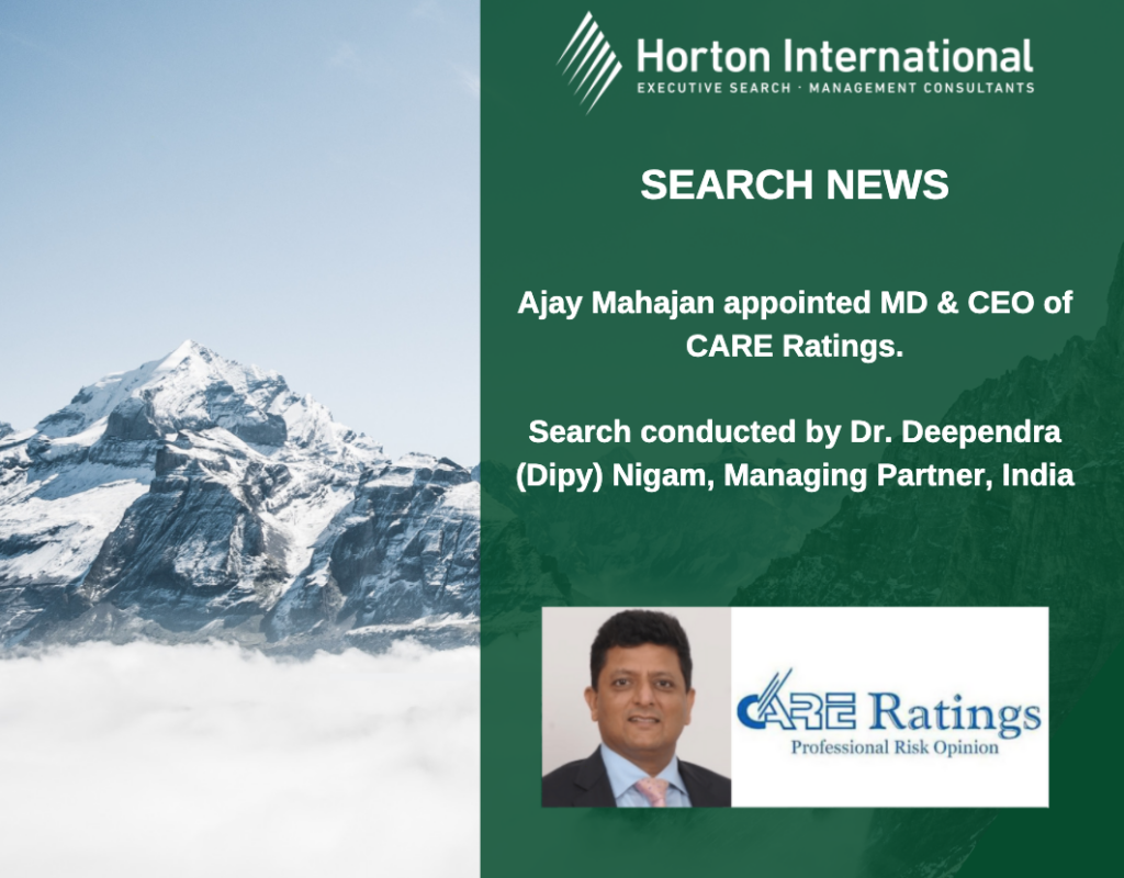 We are delighted to share that Horton International India has successfully completed a Search and placed Ajay Mahajan in the position of MD & CEO for – CARE Ratings. Ajay has joined CARE Ratings for five years from 15th April.